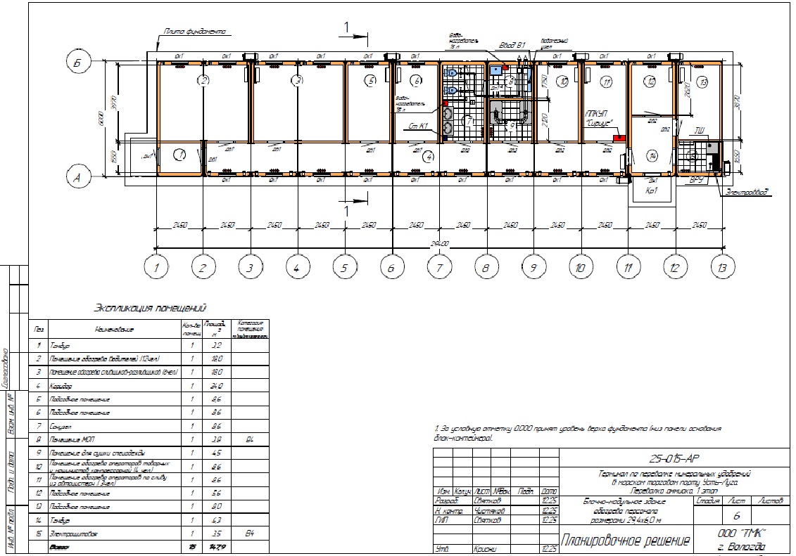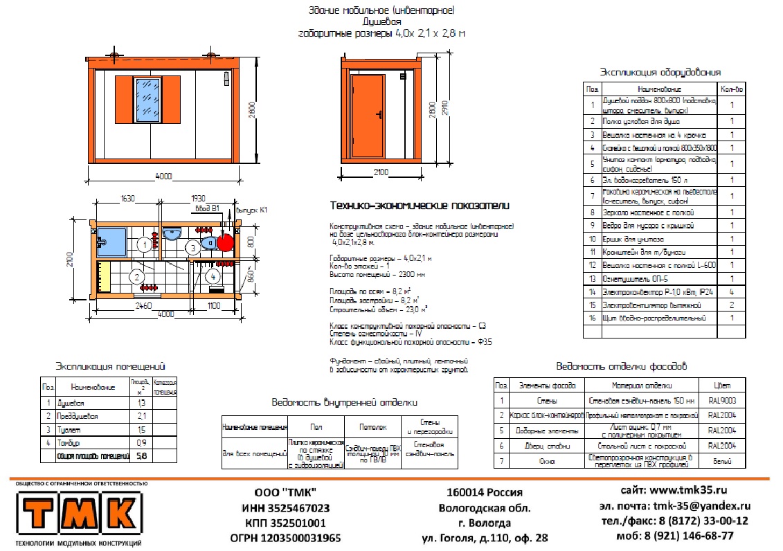 Типовые размеры модульных зданий производства ООО «ТМК»: